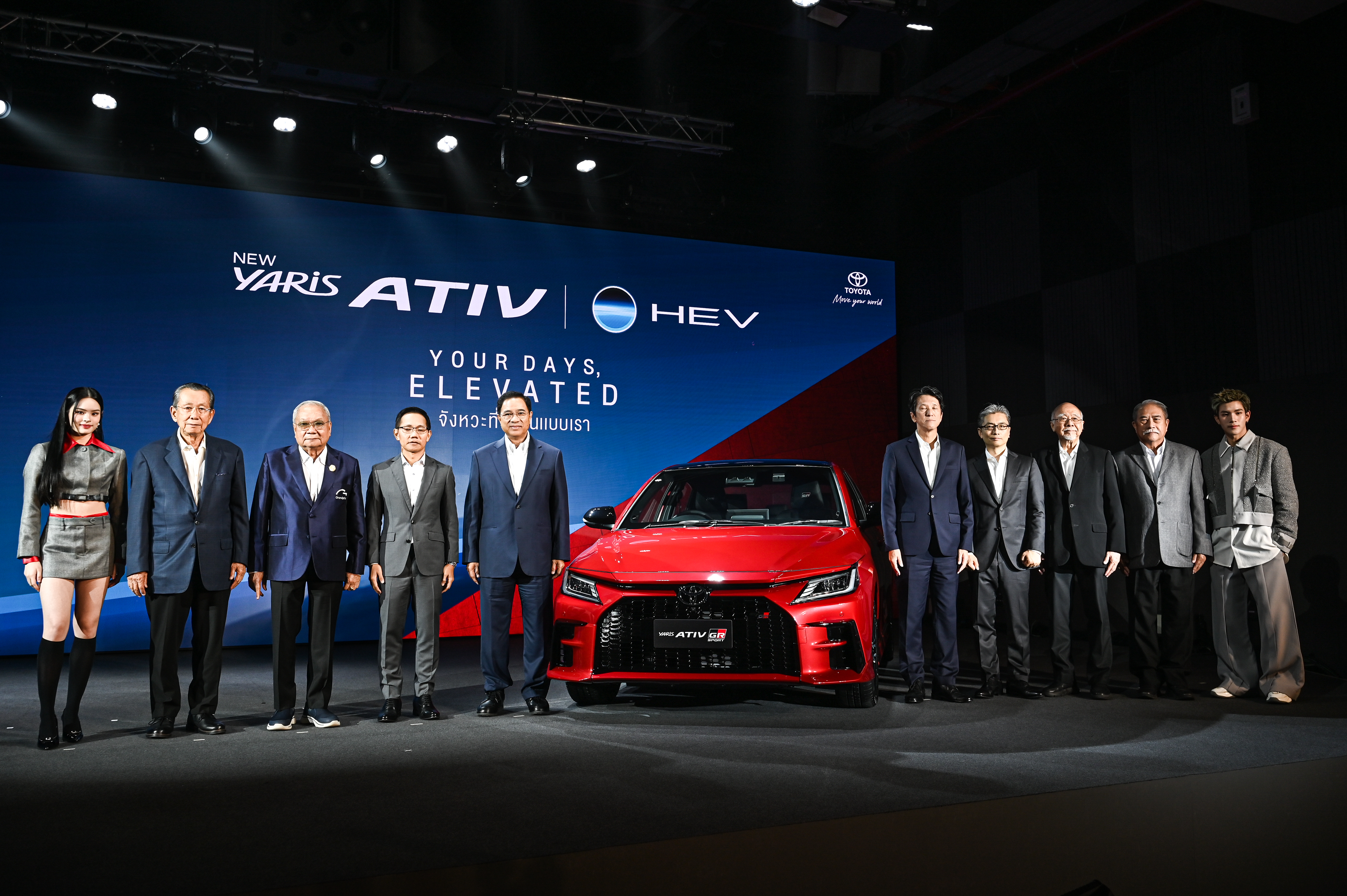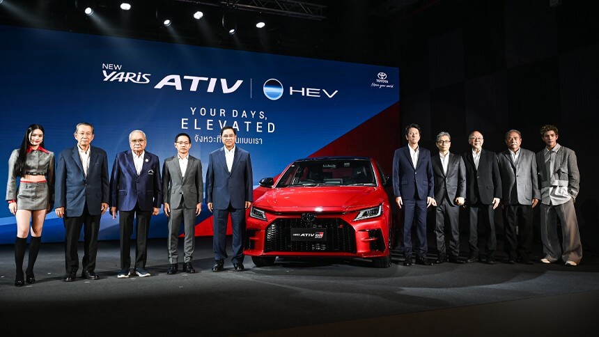 มร. โนริอากิ ยามาชิตะ กรรมการผู้จัดการใหญ่ บริษัท โตโยต้า มอเตอร์ ประเทศไทย จำกัด พร้อมด้วย มร. คาซุฮิโกะ โยชิโอกะ ผู้จัดการโครงการพัฒนาผลิตภัณฑ์ YAR IS ATIV และ นายศุภกร รัตนวราหะ รองกรรมการผู้จัดการใหญ่ บริษัท โตโยต้า มอเตอร์ ประเทศไทย จำกัด ร่วมแถลงข่าวการเปิดตัว “NEW YARIS ATIV HEV” รถยนต์ซับคอมแพคซีดานรุ่นยอดนิยมในประเทศไทยของโตโยต้า กับขุมพลังเครื่องยนต์ไฮบริด ที่จะมาเติมเต็มตลาดรถยนต์ในกลุ่มอีโคเซกเมนต์กับ 2 รุ่นย่อย ได้แก่ รุ่น HEV Premium และเร้าใจขึ้นอีกระดับ กับรุ่น HEV GR Sport