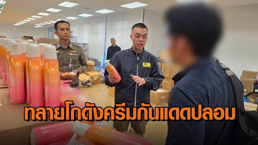 ระวังผิวสวยกลายเป็นผิวพัง! ตำรวจสอบสวนกลางบุกทลายโกดังครีมกันแดดปลอม สวมชื่อยี่ห้อดัง ขายออนไลน์ราคาถูกกว่าของจริง ยึดของกลางกว่า 2,500 ขวด