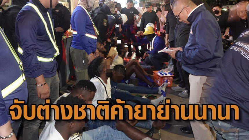 ทลายแก๊งค้ายาย่านนานา รวบ 8 คนผิวสี 1 คนไทย พบพฤติกรรมอมยาไว้ในปาก เมื่อมีลูกค้าก็คายออกมาให้
