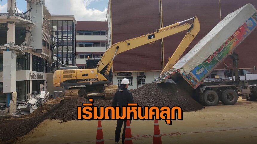 รฟม.เผยความคืบหน้าซ่อมถนนทรุด เริ่มถมหินคลุกแล้ว หลังถมทรายไปกว่า 9,000 ลบ.ม.
