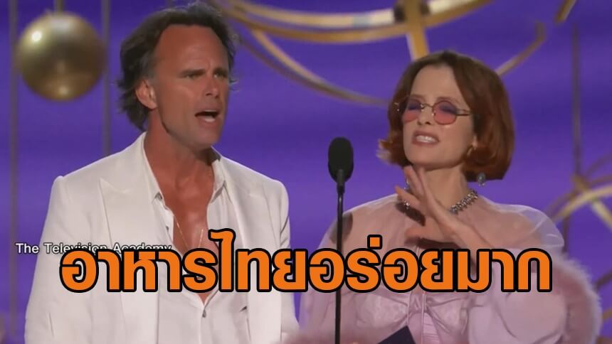ซอฟต์พาวเวอร์! วอลตัน กอกกินส์ (Walton Goggins) และ ปาร์กเกอร์ โพซีย์ (Parker Posey) สองนักแสดงนำจากซีรีส์เรื่อง The White Lotus กล่าวชื่นชมประเทศไทย "ที่นั่นสวยงามมาก และอาหารก็ยอดเยี่ยมจริง ๆ" บนเวทีประกาศรางวัล Emmy Awards ครั้งที่ 77