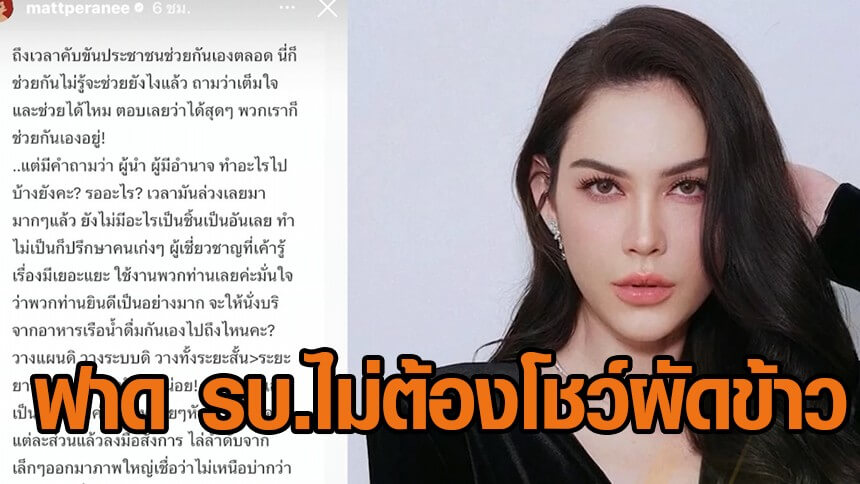 วานนี้ 26 พฤศจิกายน 2568 แมท ภีรนีย์ นางเอกสาวชื่อดังได้ออกมาโพสต์ฟาดการทำงานของรัฐบาล โดยเฉพาะผู้นำอย่างนายกรัฐมนตรี ถึงการทำงานที่ล่าช้าจนทำให้ประชาชนต้องออกมาช่วยเหลือและบริจาคช่วยกันเอง ทั้งที่มีงบกลาง โดยระบุผ่านไอจีสตอรี่ว่า