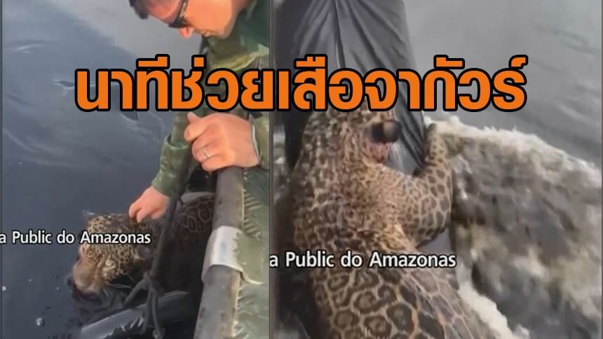 บราซิลช่วยเหลือเสือจากัวร์ ถูกยิงบาดเจ็บ อยู่ในแม่น้ำ