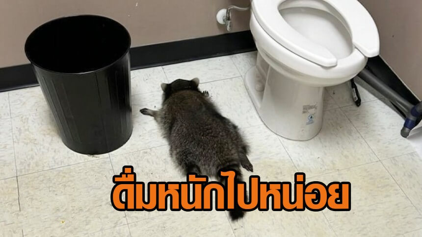 สุดน่ารัก แรคคูนเมาสลบ คาห้องน้ำในร้านเหล้าที่สหรัฐฯ