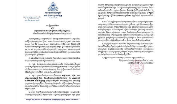CMAA ขอปฏิเสธข้อกล่าวหาที่สื่อไทยเผยแพร่และกล่าวหากัมพูชาว่า ได้วางทุ่นระเบิดใหม่บริเวณชายแดน โดยย้ำว่า ข้อกล่าวหาดังกล่าวเป็นเท็จและขัดต่อหลักการของกัมพูชา