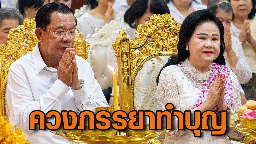 สมเด็จฯ ฮุน เซน ประธานวุฒิสภากัมพูชา ควง “บุน รานี” ภรรยา เดินทางไปทำบุญที่วัด เนื่องในเทศกาลประชุมแบน หรือเทศกาลเลี้ยงคนตายในกัมพูชา อุทิศส่วนบุญส่วนกุศลให้ทหารกล้า