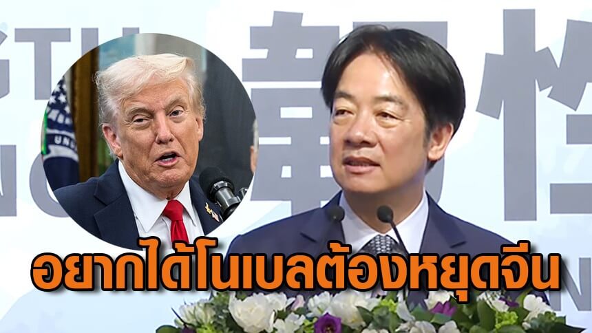 ประธานาธิบดี “ไล่ ชิงเต๋อ” ของไต้หวัน ลั่น “โดนัลด์ ทรัมป์” ผู้นำสหรัฐอเมริกา ควรได้รับรางวัลโนเบล สาขาสันติภาพ หากสามารถโน้มน้าวประธานาธิบดี “สี จิ้นผิง” ของจีน ให้หยุดการใช้กำลังทหารต่อไต้หวันได้อย่างถาวร