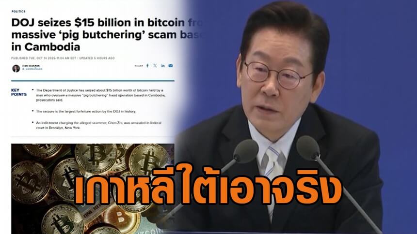 เกาหลีใต้ เล็งส่งทีมช่วยประชาชนไปกัมพูชา เผยยังมี 80 ชีวิตหายตัวไป ไม่รู้ชะตากรรม - สหรัฐฯ ยึดบิตคอยน์จากสแกมเมอร์กัมพูชา ครั้งใหญ่สุดในประวัติศาสตร์ 4.9 แสนล้านบาท แฉมีศูนย์ปฏิบัติการอยู่ทั่วกัมพูชา