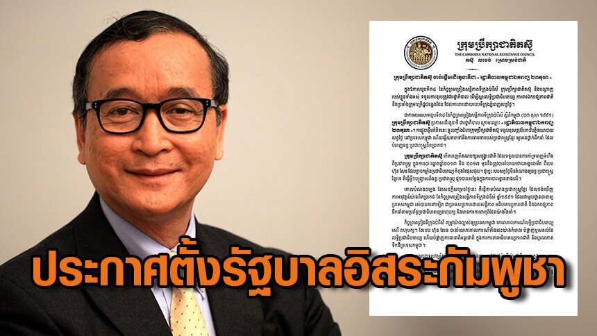 “สม รังสี” อดีตผู้นำฝ่ายค้านกัมพูชาออกแถลงการณ์ ประกาศตั้ง “รัฐบาลอิสระกัมพูชา” ในวันที่ 23 ตุลาคม อย่างเป็นทางการ เพื่อฟื้นฟูประชาธิปไตย ปกป้องอธิปไตยของชาติ และต่อสู้กับองค์กรอาชญากรรมที่ได้รับการคุ้มครองจากรัฐบาลพนมเปญชุดปัจจุบัน