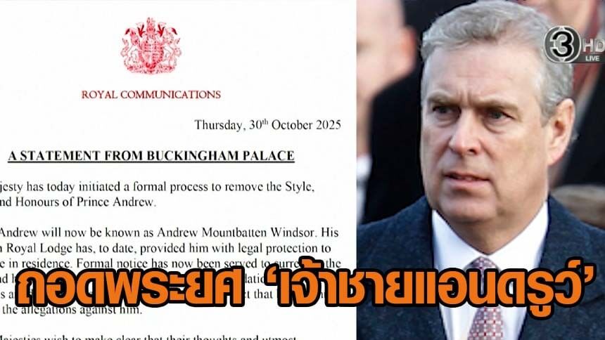 สำนักพระราชวังบักกิงแฮมของอังกฤษแถลงเมื่อวันที่ 30 ต.ค.ตามเวลาท้องถิ่นว่า สมเด็จพระเจ้าชาร์ลส์ที่ 3 แห่งสหราชอาณาจักร ทรงปลดพระยศ เจ้าชายแอนดรูว์ พระราชอนุชา รวมถึงมีพระบรมราชโองการให้เสด็จออกจากพระราชวังวินด์เซอร์ และถือเป็นหนึ่งในมาตรการที่รุนแรงที่สุดต่อสมาชิกราชวงศ์ในประวัติศาสตร์อังกฤษยุคใหม่
