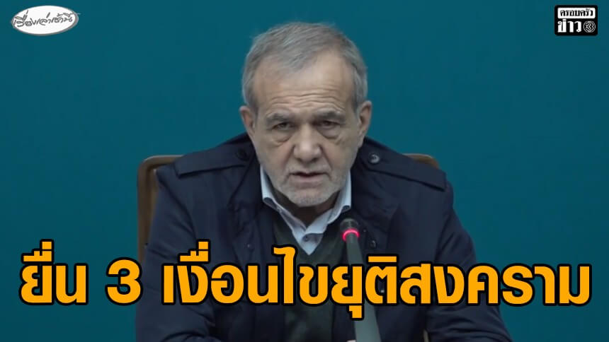 ประธานาธิบดีมาซูด เปเซชเคียน ของอิหร่าน ประกาศยื่นเงื่อนไขยุติสงครามกับสหรัฐอเมริกาและอิสราเอล เรียกร้องให้รับรองระบอบการปกครอง จ่ายเงินชดเชย และรับประกันว่าจะไม่โจมตีอีกในอนาคต