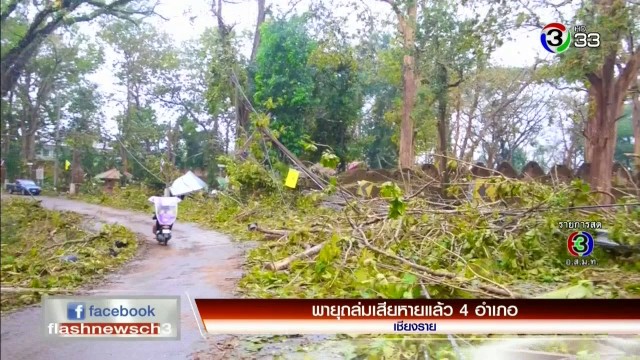 เจ้าหน้าที่เร่งตัดต้นไม้ที่ทับเสาไฟฟ้าและปิดเส้นทางเข้า อ. เชียงแสน บริเวณเจ้าพ่อประตูป่าสัก และภายในเขตเมืองเก่า อ. เชียงแสน พร้อมสำรวจความเสียหายเจดีย์วัดเก่านับอายุพันปี ทั้งที่จากการเจอพายุถล่ม พบความเสียหายแล้วใน 4 อำเภอ คือ อ. พาน อ. แม่จัน อ. เชียงแสนและแม่ฟ้าหลวง