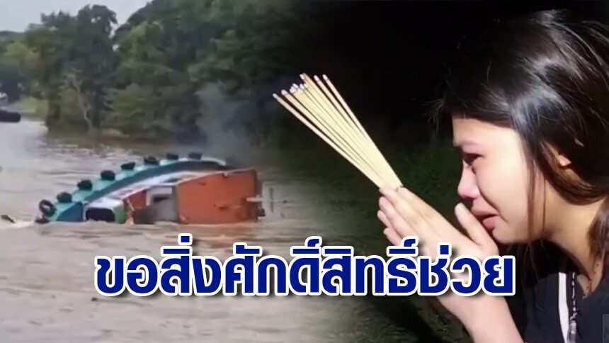 จุดธูปขอสิ่งศักดิ์สิทธิ์ช่วย ค้นหาหญิงท้อง 7 เดือน จมสูญหายเหตุเรือล่มแม่น้ำป่าสัก