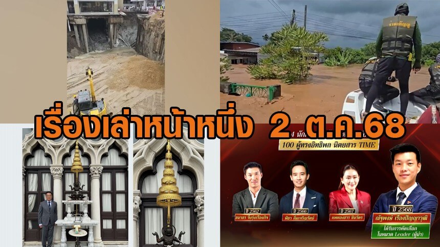 เรื่องเล่าหน้าหนึ่ง 2 ต.ค.68 นายกฯสายมูเสริมฉัตรองค์นรสิงห์-ทุ่มทรายอัดใต้ถนนทรุด-จับเขมรหลบหนีเข้าไทย