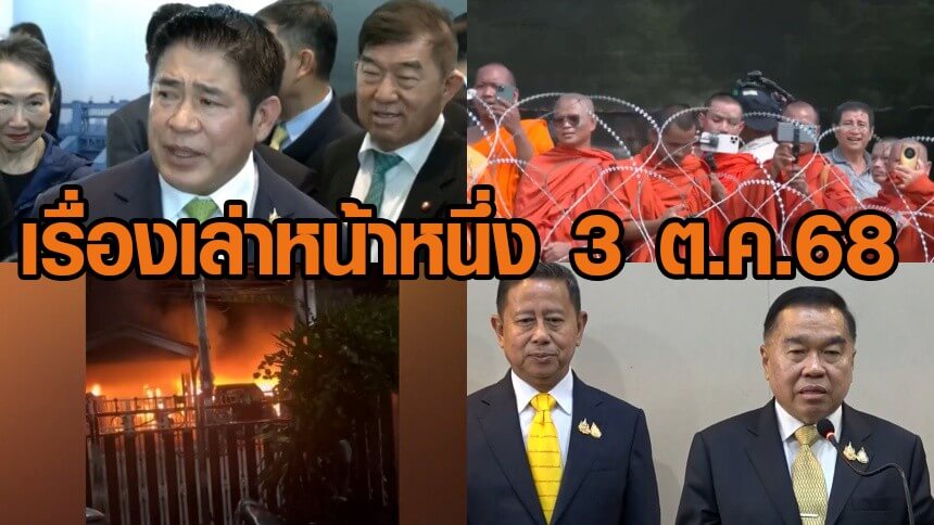 เรื่องเล่าหน้าหนึ่ง 3 ต.ค.68 ธรรมนัสเดือดจ่อฟ้องโรม-จีนยันไม่เคยส่งอาวุธให้กัมพูชา-ไฟไหม้บ้านดับ7ศพ