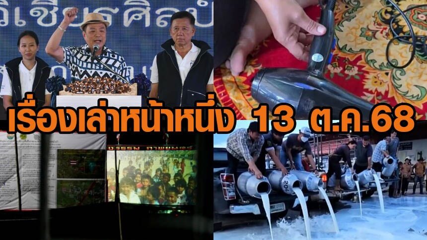 เรื่องเล่าหน้าหนึ่ง 13 ต.ค.68 อนุทินหาเสียง สส.เมืองกาญจน์-ฉายหนังกลางแปลงชายแดน-ใช้ไดร์เป่าผมไฟช็อตดับ