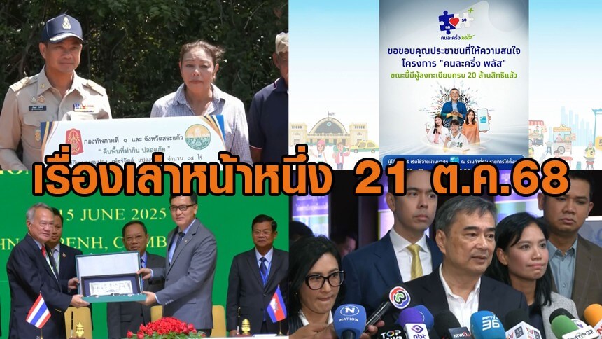 เรื่องเล่าหน้าหนึ่ง 21 ต.ค.68 จับตาไทย-เขมร ถกJBC / คนละครึ่งพลัส สิทธิเต็มแล้ว / คืนที่ดินให้ชาวหนองหญ้าแก้ว