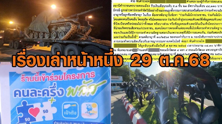 เรื่องเล่าหน้าหนึ่ง 29 ต.ค.68 ไล่ออก ตร.เอี่ยวแก๊งคอลฯ-เชียงใหม่พ่นสีดอกไม้ดำ-ใช้คนละครึ่งพลัสวันแรก
