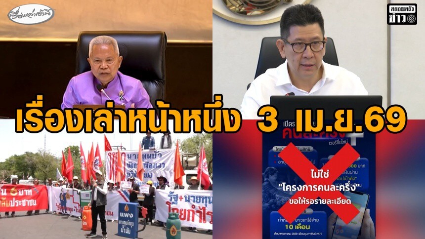 เรื่องเล่าหน้าหนึ่ง 3 เม.ย.69 ปธ.โสภณปะทะฝ่ายค้าน-ดีเซลขึ้นอีก 3.50 บาท-คลังน้ำมันยักษ์ใหญ่ตุนน้ำมัน