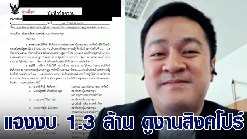 'หมออ๋อง' แจงงบ 1.3 ล้าน ดูงานสิงคโปร์ ต่อยอดนโยบายสภาโปร่งใส ยืนยันทำตามระเบียบกระทรวงการคลัง ใครจะตรวจสอบก็ยินดีแสดงใบเสร็จ