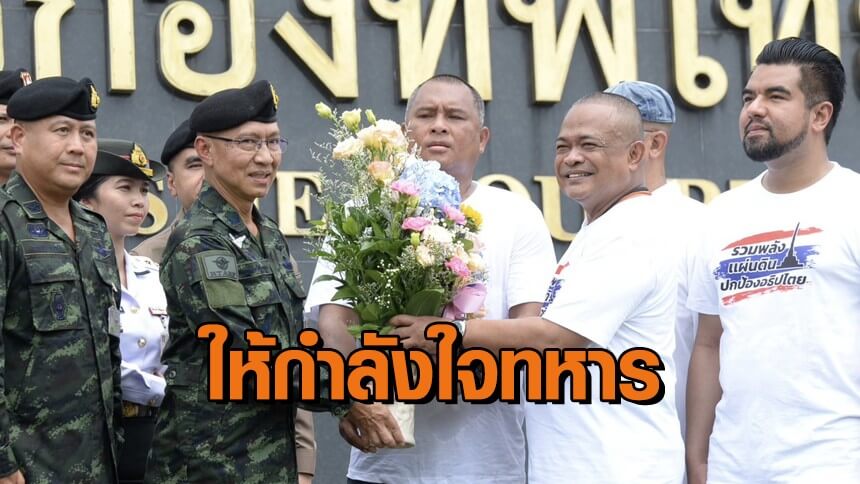 คณะรวมพลังแผ่นดิน รวมตัวมอบดอกไม้ ให้กำลังใจทหาร 3 เหล่าทัพ