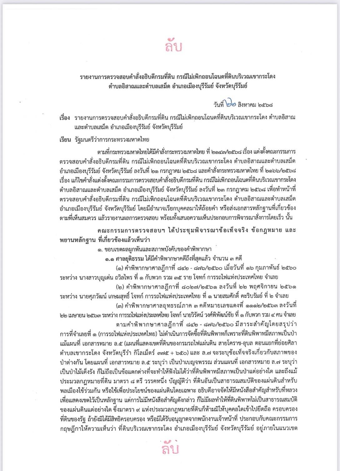 เปิดเอกสารลับ! ผลสอบกรรมการที่ดินเขากระโดง ยุค “ภูมิธรรม – เดชอิศม์” ไม่เคยเสนอให้เพิกถอนด้วยมาตรา 61 วรรค 8 แถมสั่งลุยตั้งแต่ 1 ส.ค.ก่อนผลสอบออก 27 ส.ค.ที่ผ่านมา