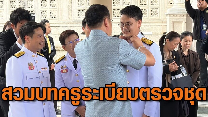 นายกฯ สวมบท "ครูระเบียบ" ตรวจชุดปกติขาว ติดเข็มกลัดใหม่ ให้ "ไชยชนก"