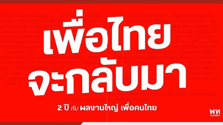 'เพื่อไทย' โพสต์ "เพื่อไทยจะกลับมา : 2 ปี กับผลงานใหญ่ เพื่อคนไทย"