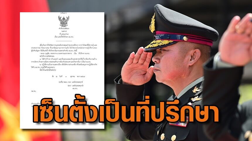 ทำงานต่อเนื่อง! “ผบ.ทบ.” เซ็นตั้ง “พล.ท.บุญสิน” เป็นที่ปรึกษาด้านความมั่นคง ช่วยสนับสนุนการปฏิบัติภารกิจ พร้อมจัดห้องทำงานไว้ใกล้กัน