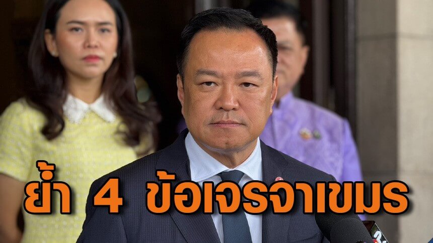 "อนุทิน" เตรียมแจ้ง "ทรัมป์" ย้ำเงื่อนไข 4 ข้อเจรจากัมพูชา เผยไม่มีเส้นตายผลักดันออกนอกพื้นที่