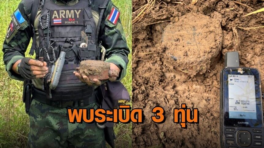 พบระเบิด 3 ทุ่นสภาพพร้อมใช้งาน ที่บ้านหนองหญ้าแก้ว คาดกัมพูชาวางไว้