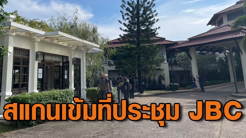 ตำรวจเมืองจันท์ สแกนคนเข้าออกพื้นที่ประชุม JBC หลัง คปท. บุกเรียกร้องหยุดประชุม