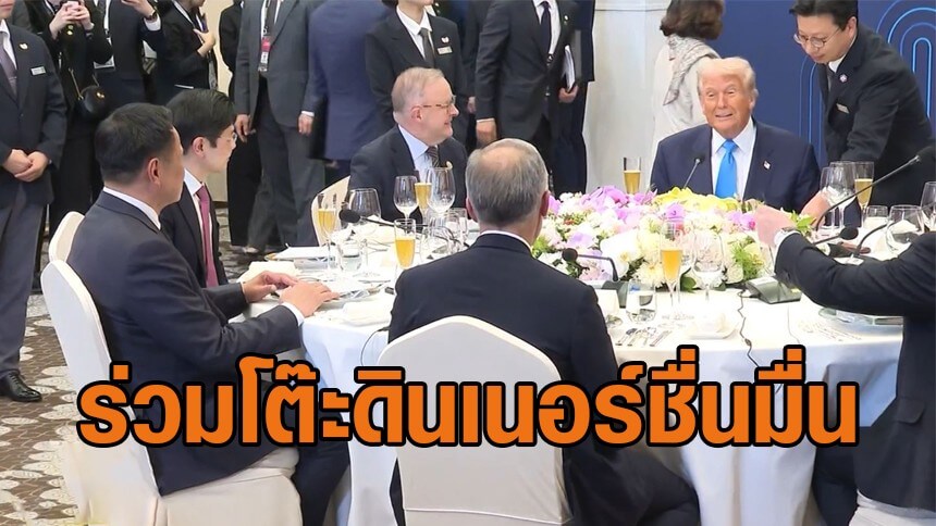 อนุทิน ร่วมโต๊ะดินเนอร์ ทรัมป์ เผยยืนคุยส่วนตัว แนวโน้มดี ทรัมป์รับปากแจ้งผู้แทนการค้า ปมภาษีสหรัฐฯ ให้ไทยได้เงื่อนไขดีกว่านี้ ขอบคุณประสานลงนามสันติภาพไทย-กัมพูชา ปลื้มได้รับความสนใจในสายตาต่างชาติ หลังหลายประเทศตอบรับทวิภาคี