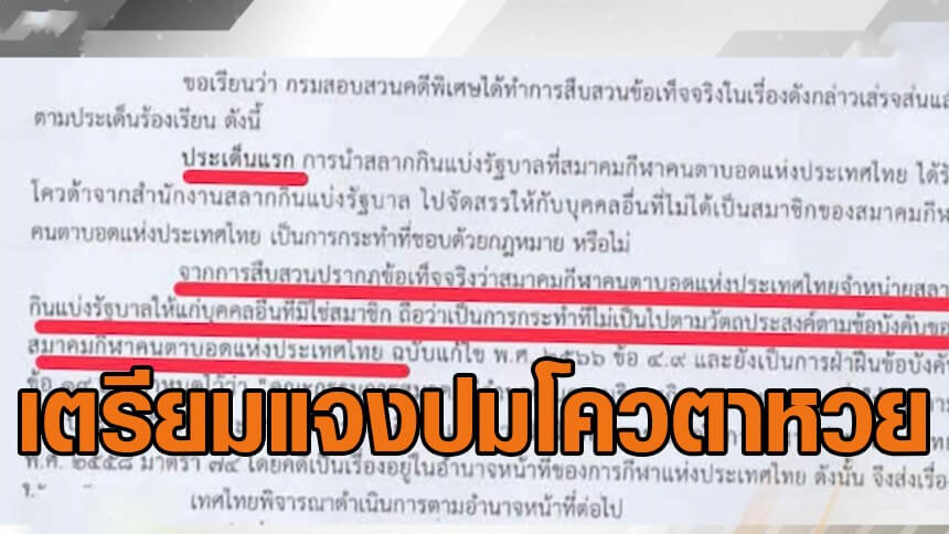 แท็กที่เกี่ยวข้อง โควตาหวยสมาคมกีฬาคนตาบอด ,โกงโควตาหวย ,สมาคมกีฬาคนตาบอด