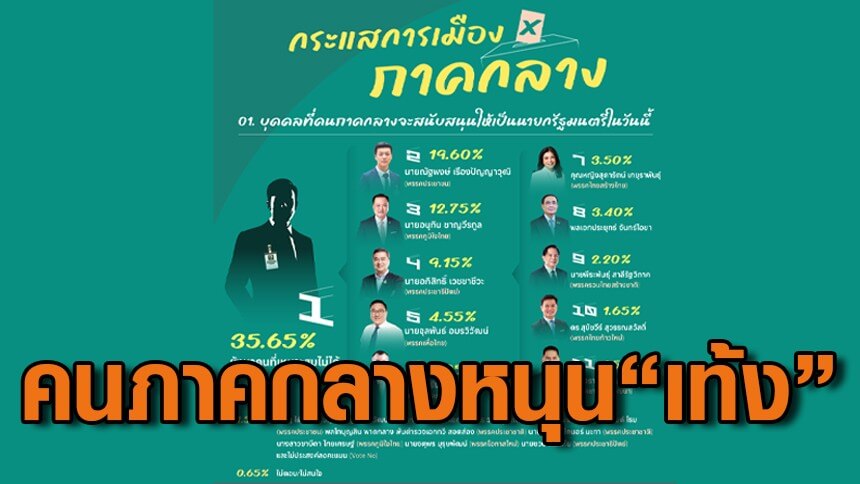 จากการสำรวจเมื่อถามถึงบุคคลที่คนภาคกลางจะสนับสนุนให้เป็นนายกรัฐมนตรีในวันนี้ พบว่า