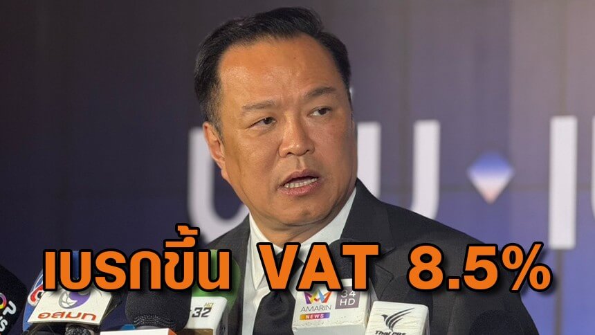 “อนุทิน” เบรกขึ้น VAT 8.5% ลั่นไม่ขึ้นแน่นอน ต้องอยู่ที่เดิมก่อน เหตุประเทศอยู่ระหว่างการฟื้นฟู-ปรับสภาพให้มีศักยภาพดำรงในเวทีโลก