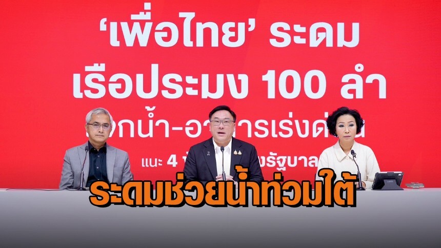 “เพื่อไทย” ระดมเรือ 100 ลำ เจ็ตสกี 10 ลำ อาหารละ 1,000 กล่อง เร่งช่วยเหลือน้ำท่วมใต้