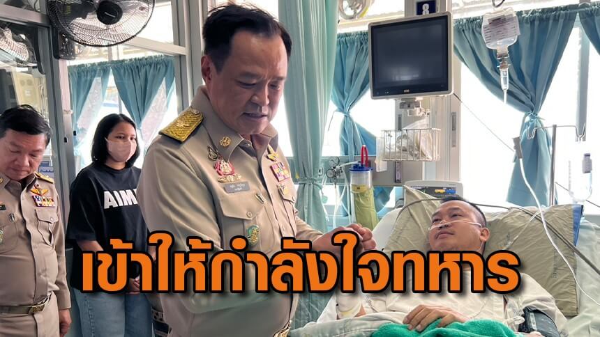 วันที่ 21 ธ.ค. 2568 ที่โรงพยาบาลพระปกเกล้า จ.จันทรบุรี นายอนุทิน ชาญวีรกูล นายกรัฐมนตรีและรัฐมนตรีว่าการกระทรวงมหาดไทย เยี่ยมและให้กำลังใจทหาร จ่าเอก เทอดพงษ์ ผมนะรา สังกัดหน่วยเฉพาะกิจนาวิกโยธินตราด กองทัพเรือ ที่ได้รับบาดเจ็บจากการเหยียบทุ่นระเบิด ในพื้นที่บ้านสามหลัง ต.ชำราก อ.เมือง จ.ตราด ซึ่งระเบิดส่งผลให้สูญเสียขาขวา