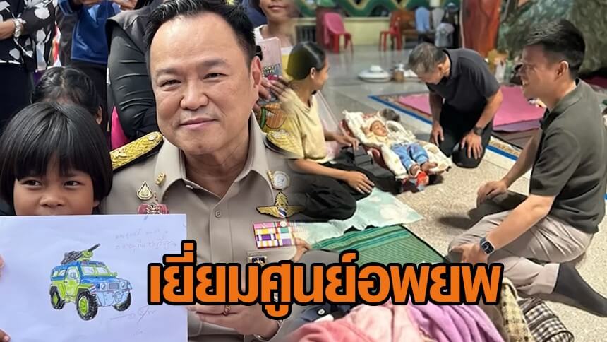 ตบเท้าเยี่ยมศูนย์อพยพ 'อนุทิน' นั่งระบายสีกับเด็ก 'เท้ง' พูดคุยกับชาวบ้าน