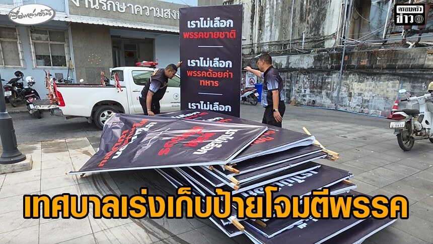 เทศกิจเร่งเก็บป้ายโจมตีพรรคการเมือง หลังโผล่ว่อนทั่วเมืองพิษณุโลก ชี้ ผิด พ.ร.บ.ความสะอาด