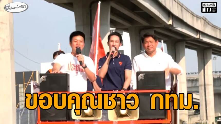 'เท้ง' ขึ้นรถแห่-เดินตลาด ขอบคุณชาว กทม. ส่งกำลังใจด้อมส้ม "ไม่ร้องนะ ถ้าร้องเดี๋ยวร้องด้วย"