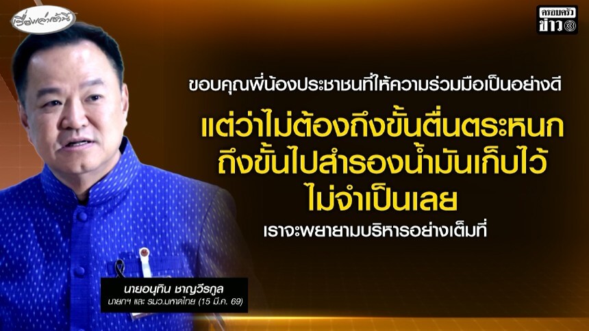 'อนุทิน' ย้ำไม่ต้องวิตกกังวล น้ำมันสำรองไทยมากสุดในอาเซียน บอกแม้จะไม่ขาดแคลน แต่ต้องไม่ลั้ลลา
