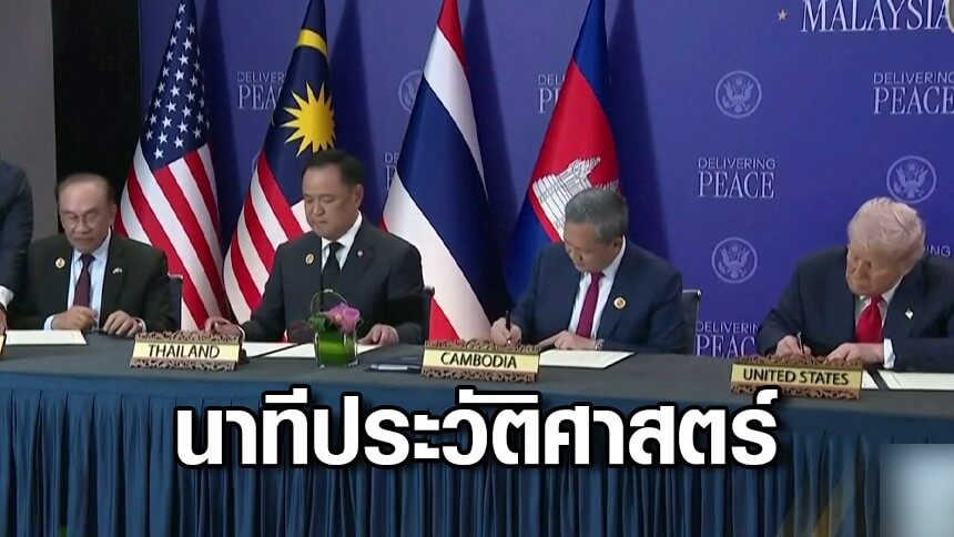 นาที 'อนุทิน' - 'ฮุน มาเนต' ลงนามสันติภาพไทย-กัมพูชา 'ทรัมป์-อันวาร์' เป็นสักขีพยาน