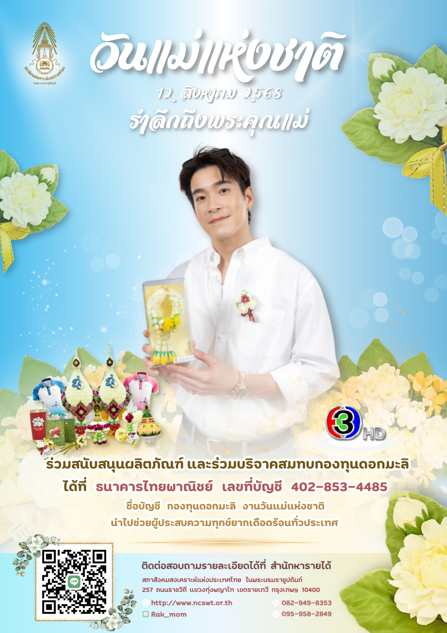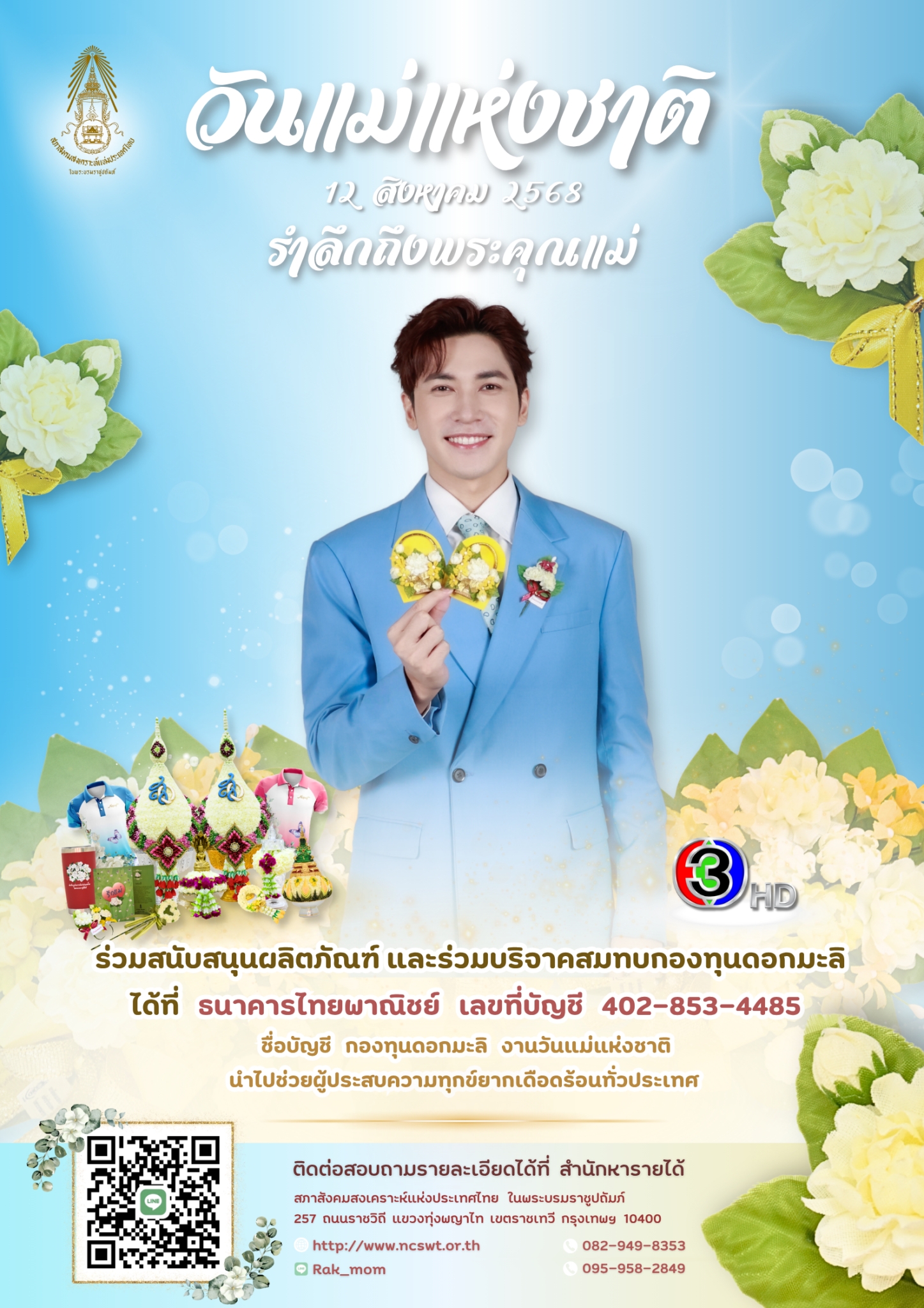 โอกาสนี้สถานีโทรทัศน์ไทยทีวีสีช่อง 3 ส่งตัวแทนศิลปินนักแสดง สมิธ ภาสวิชญ์ บูรณนัติ นักแสดงผู้ได้รับคัดเลือกเป็นลูกที่มีความกตัญญูกตเวทีอย่างสูงต่อแม่ และพรีเซ็นเตอร์ประชาสัมพันธ์ผลิตภัณฑ์จากดอกมะลิ ประจำปี 2568 ร่วมงานแถลงข่าว