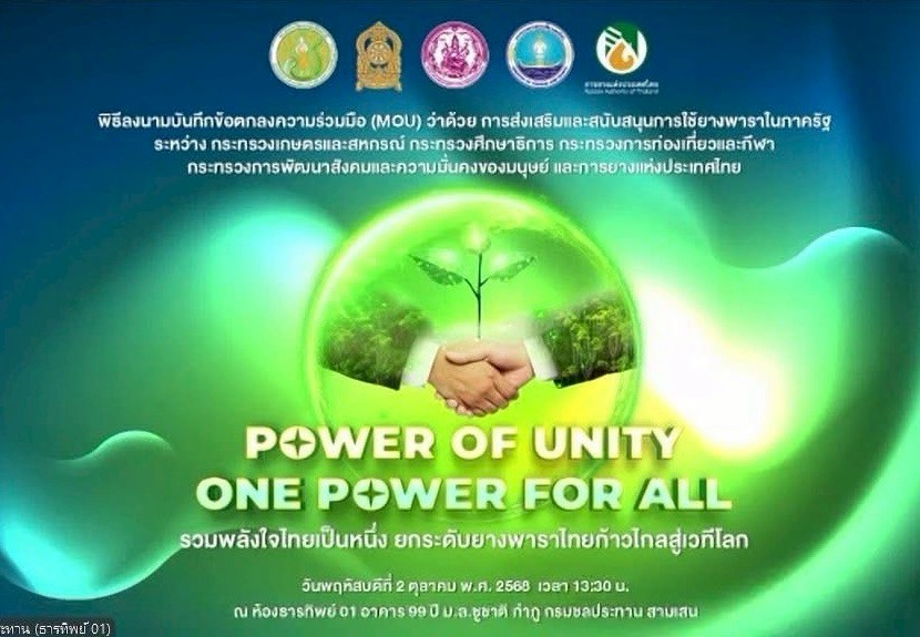 กระทรวงเกษตรฯ จับมือ 3 กระทรวง และการยางแห่งประเทศไทย ลงนาม MOU ส่งเสริมและสนับสนุนการใช้ยางพาราในภาครัฐ โดยมีการนำร่องใช้ยางเพื่องานชลประทานเป็นลำดับแรก