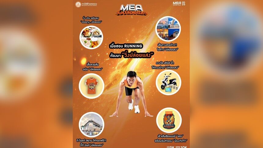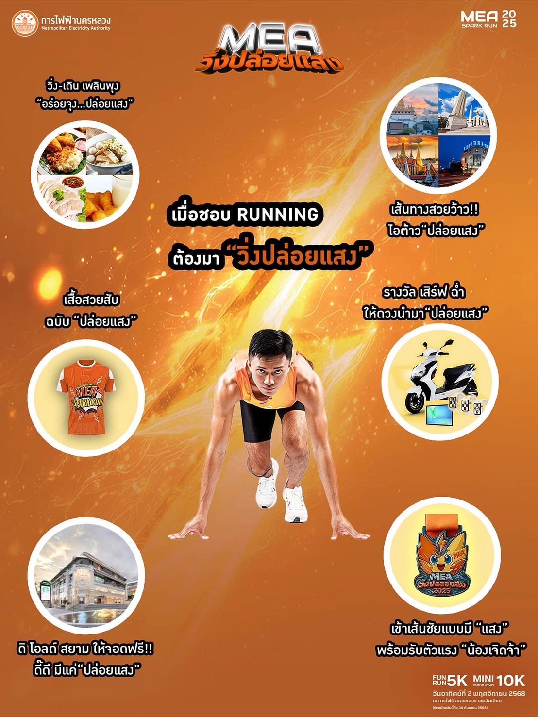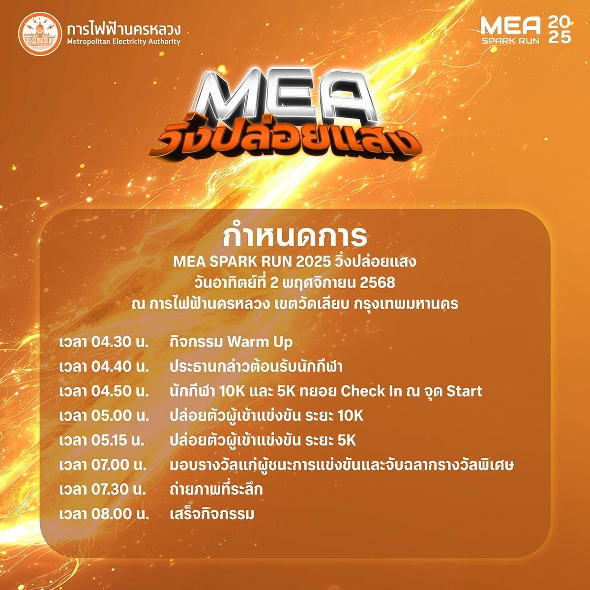 MEA ขอเชิญพี่ ๆ มาร่วมงานวิ่ง “MEA SPARK RUN” ในวันที่ 2 พฤศจิกายน 2568 นี้ ณ MEA SPARK กฟน.เขตวัดเลียบ