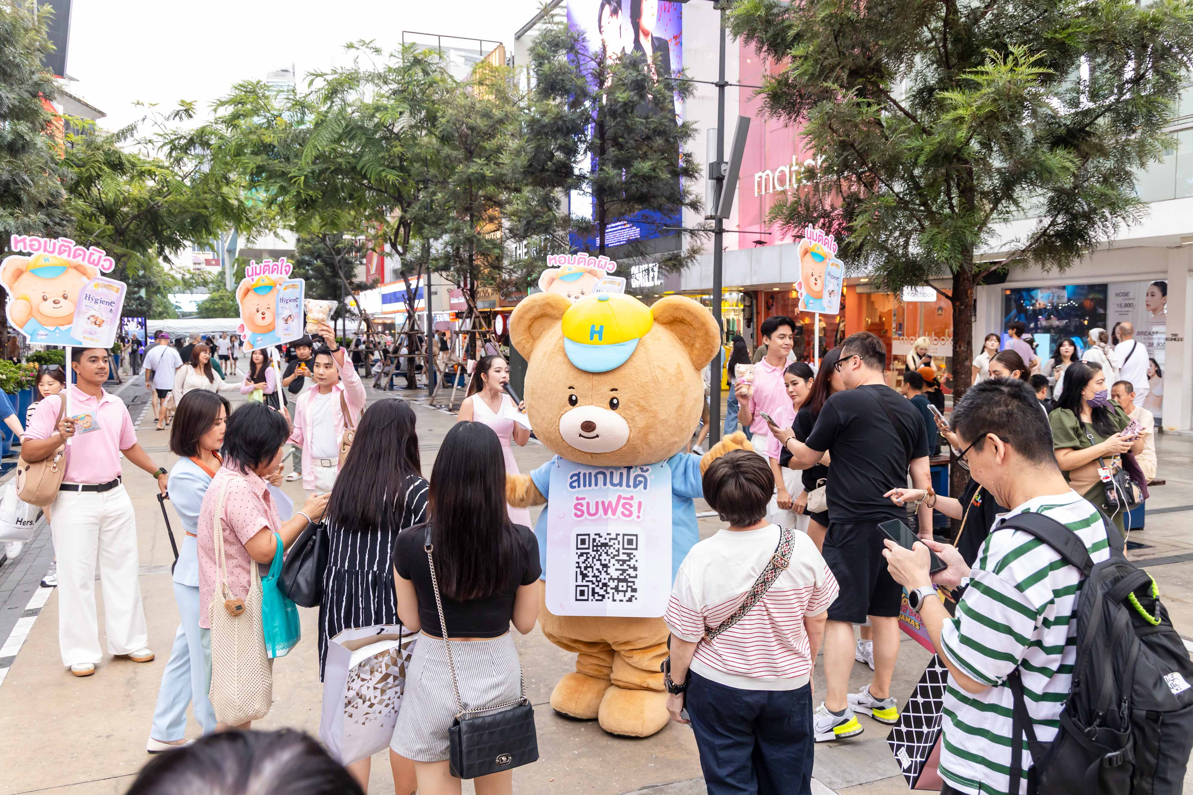 ไฮยีน ได้สร้างสีสันและเสียงฮือฮาใจกลางกรุงผ่านกิจกรรมชวนสงสัยจนเกิดกระแสไวรัลบนโลกออนไลน์กว่า 8 ล้านวิว ใครอยากรู้ หอมติดผิว นุ่มติดใจจนไม่อยากตื่น เป็นยังไง เพียงสแกน QR Code รับสินค้าทดลองฟรี! พร้อมเปิดตัวน้องหมี "ไฮแบร์" (HyBear) มาสคอตหมีน้อยขี้เล่นแสนซน ตัวแทนความนุ่ม น่ากอดที่จะมาสร้างสีสันและเสียงหัวเราะไปทั่วกรุง