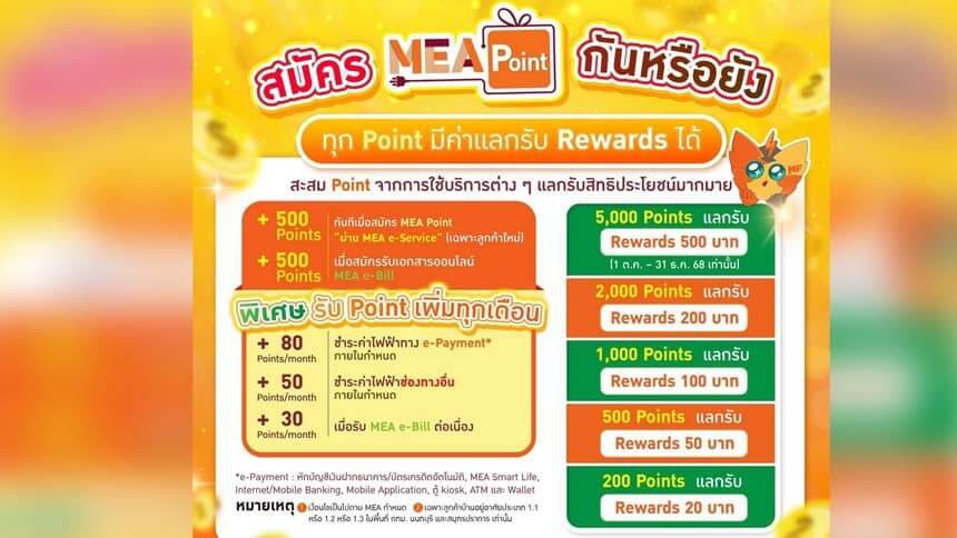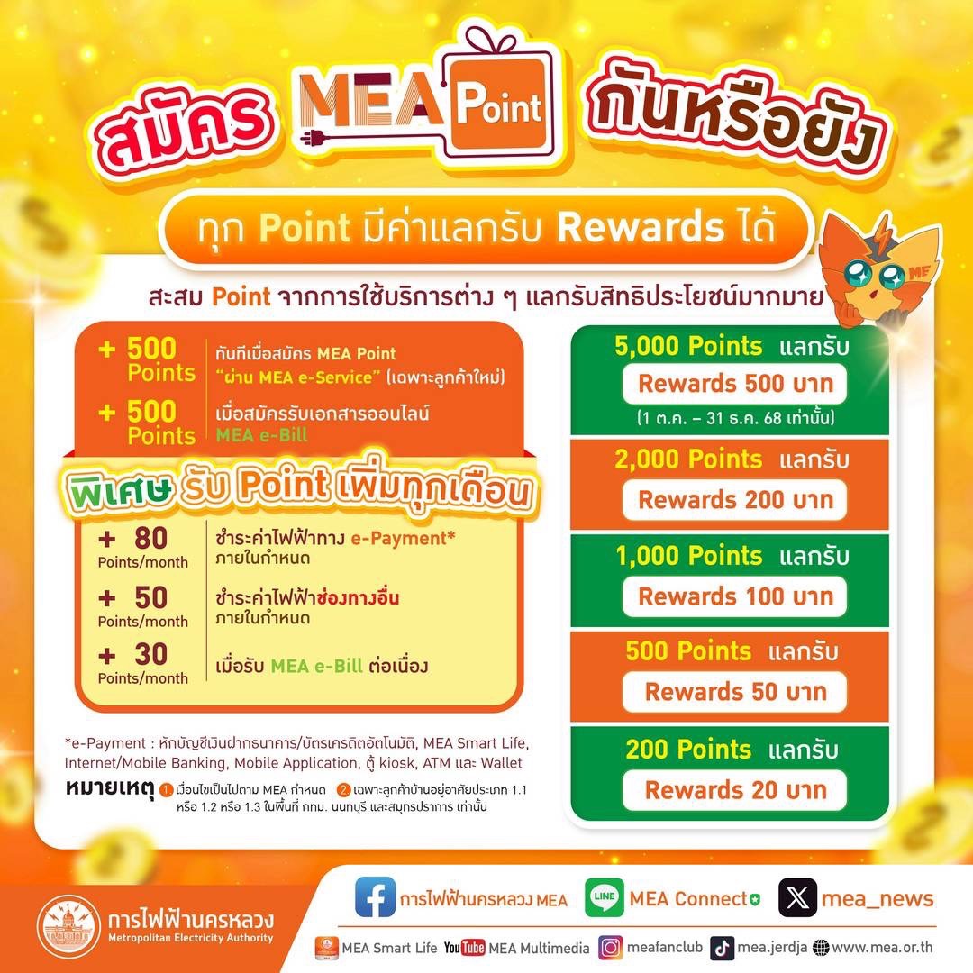 MEA Point ทุก Point มีค่า แลกรับ Rewards ได้