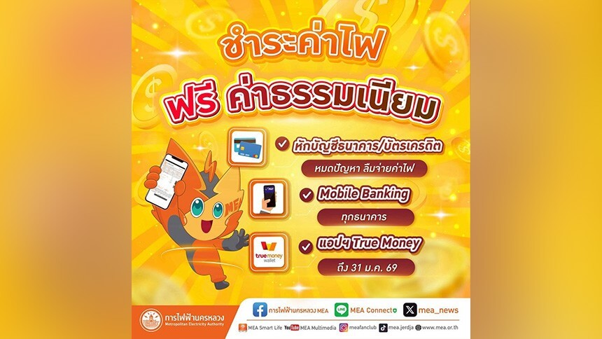 #MEAepayment #การไฟฟ้านครหลวงในมือคุณ #MEAeservice #FullyDigitalService #ConvergentService #MEAsmartservice #MEAepayment #จ่ายค่าไฟออนไลน์ #VirtualDistrict #MEAsmartlife #MEAconnect #พลังดีดีที่รู้สึกได้ทุกวัน #MEA #การไฟฟ้านครหลวง #พลังงานเพื่อวิถีชีวิตเมืองมหานคร