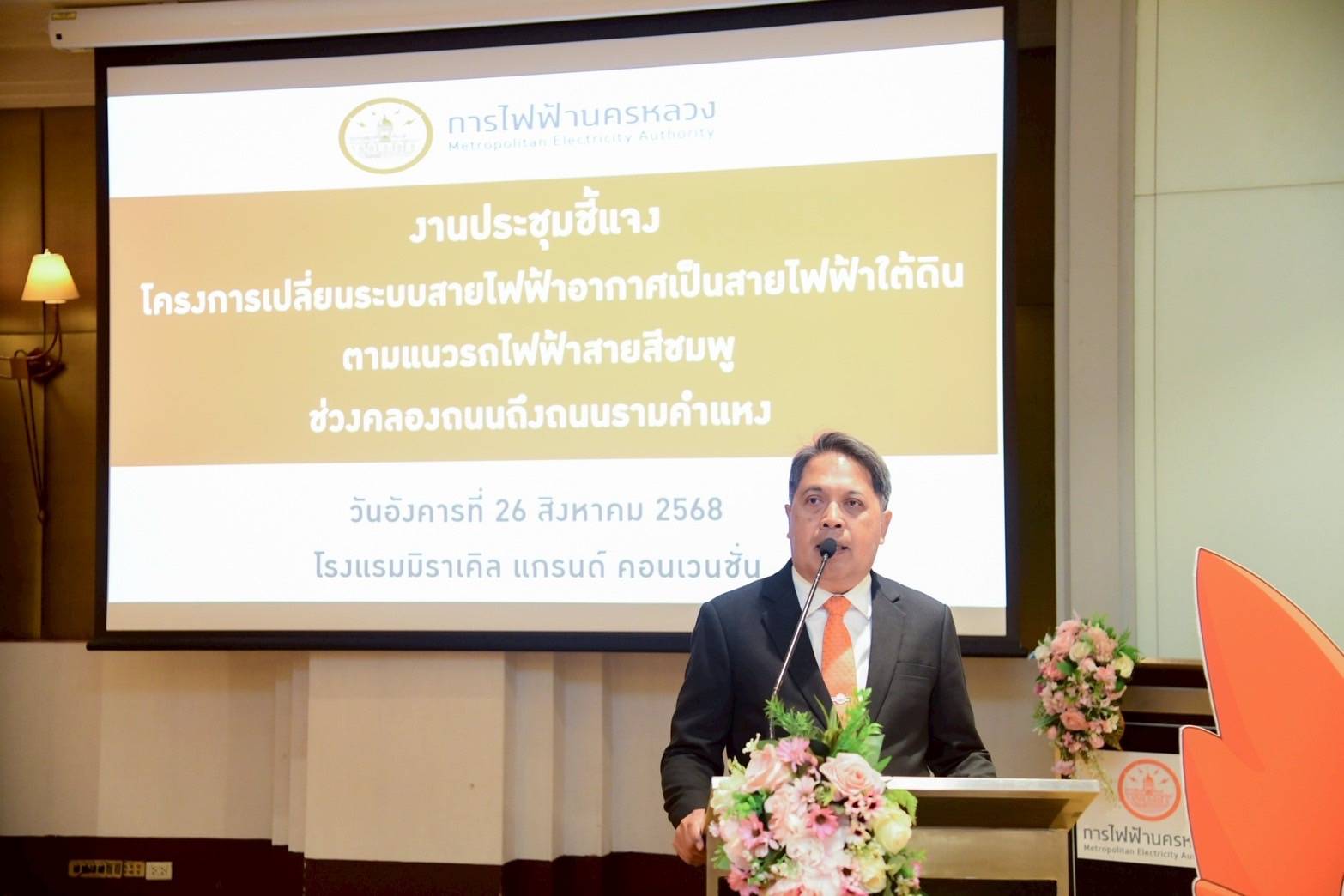 รองผู้ว่าการ MEA กล่าวว่า MEA มุ่งเพิ่มประสิทธิภาพพลังงานเพื่อวิถีชีวิตเมืองมหานคร เดินหน้าขับเคลื่อนนโยบายกระทรวงมหาดไทย และรัฐบาล โดยเร่งดำเนินโครงการเปลี่ยนระบบสายไฟฟ้าอากาศเป็นสายไฟฟ้าใต้ดินมาอย่างต่อเนื่อง ล่าสุดจะดำเนินโครงการตามแนวรถไฟฟ้าสายสีชมพู เส้นทางช่วงคลองถนน ถึงถนนรามคำแหง ซึ่งเป็นเส้นทางคมนาคมสำคัญของกรุงเทพมหานครที่มีผู้ใช้ไฟฟ้าทั้งภาคธุรกิจ หน่วยงานราชการ และประชาชนจำนวนมาก โดยมีพื้นที่ดำเนินการ 18.8 กิโลเมตร คาดว่าจะก่อสร้างแล้วเสร็จและรื้อถอนเสาสายในปี 2572 โดย MEA จะดำเนินการก่อสร้างควบคู่กับโครงการรถไฟฟ้าของ รฟม. ในช่วงเวลา 22.00–05.00 น. เพื่อหลีกเลี่ยงผลกระทบต่อการจราจร